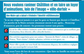 « Je ne me résignerai jamais à ce que les gens ne fassent que dormir à Châtillon. » Cette phrase, nous l’avons tous entendue de la part de la Maire sortante : Nadège Azzaz . Pourtant, six ans après, le constat est sans appel : notre ville s’éteint doucement. Commerces qui se raréfient, lieux désertés … Lire la suite de [Programme] Stop à la « ville-dortoir » : Notre plan d’urgence pour réveiller Châtillon et briser la solitude
